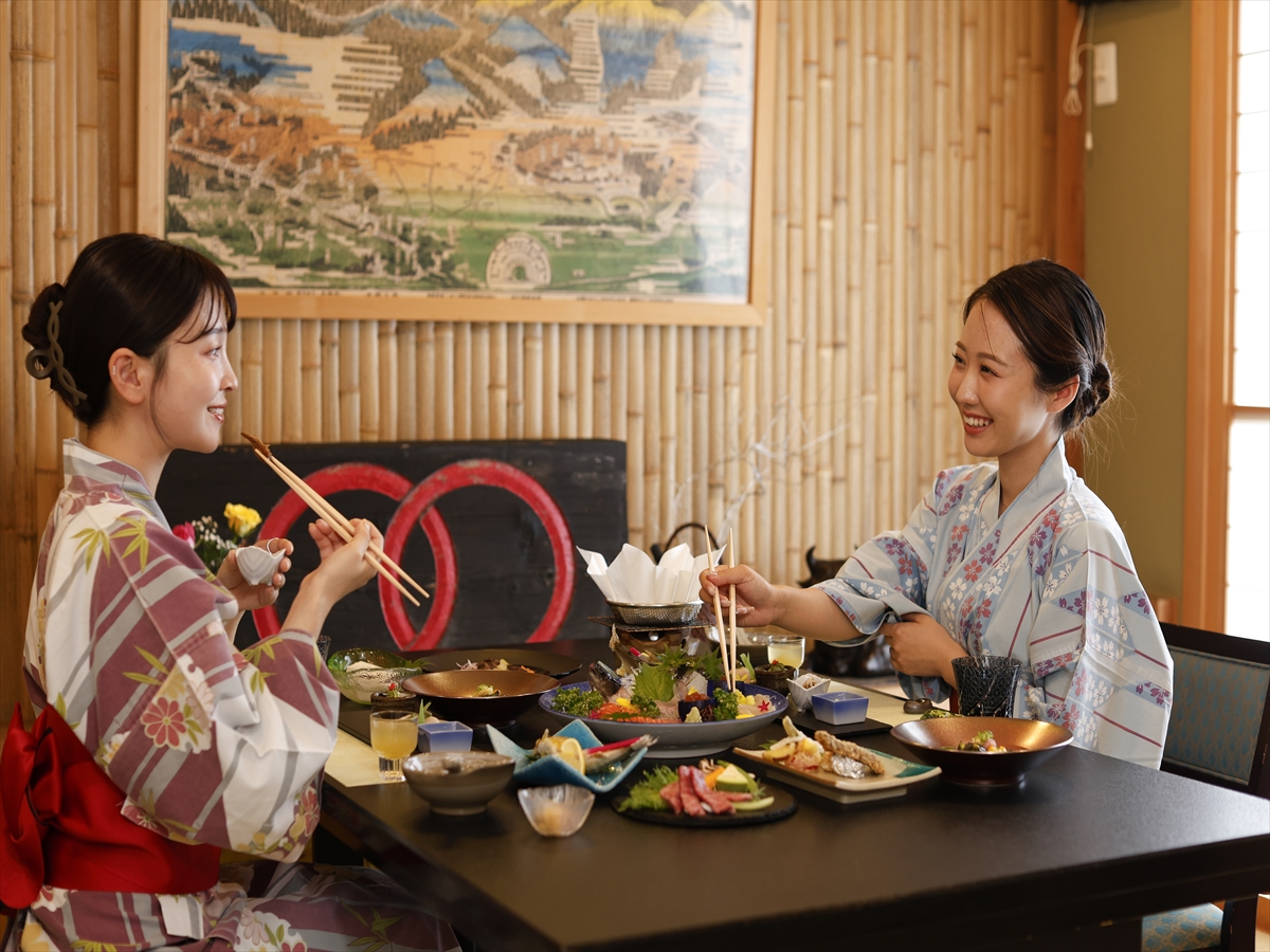 ゆったりと落着ける、純和室をご用意。秋以降はお部屋にはほっこり心まで温まるおこた(コタツ)を設えてお迎えします。